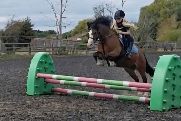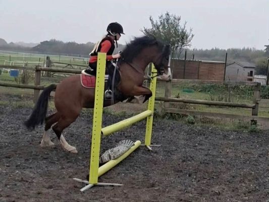 Shes good to hack on her own or with company, is happy to go first or last and isnt phased by any traffic. Shes good to travel on her own and in company and has been to the beach, shows, on fun rides, etc and has always been perfect. Chloe has been ridden by my novice daughter since she was 3 but has also been schooled well by an adult so she is riding away nicely. She has 3 balanced paces and loves to jump! Shes never strong or silly but can be a typical cheeky Welsh at times, but never dangerous. My daughter has always been fine riding her.