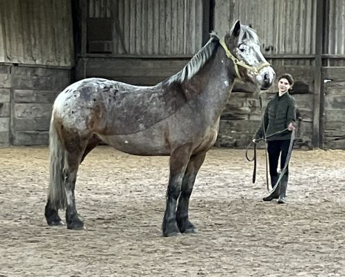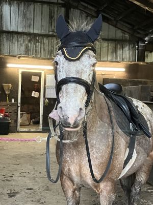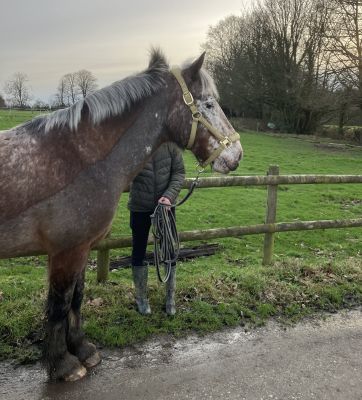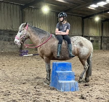 Beautiful Red Roan Appaloosa Cross Spotty is a 13.3hh, 11 year old Appaloosa cross. She is the sweetest mare and finding her a 5* forever home is our priority. She is perfect for the farrier, dentist, to clip, to load, great in traffic, never kicked, bitten, reared or bucked. Never sick or sorry. She has been show-jumped, shown, cross country, and jumped up to 1.10 at home, and always brings home rosettes.