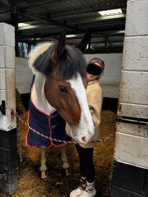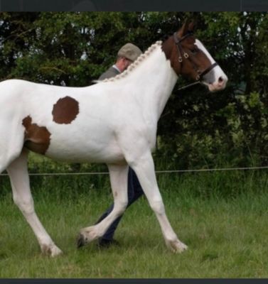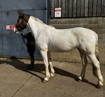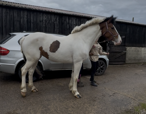 Flo, a potential all-rounder for someone to put their stamp on. 4-year-old 16.1hh Bay tobiano mare. Flo is a sweet and kind mare who was professionally broken in and schooled last summer and has had the winter off to mature. Due to a change in a family circumstances I’m sadly looking for a new home. She took all her ridden work in her stride and was always willing to please. She will happily hack out alone and in company. Videos of her being broken in are available on request. She’s up to date with all vaccinations and feet (currently shod on all 4), and all history is known for this mare. Flo is a chaps registered and is by the coloured stallion Lostock Candyman. Very sad sale for such a lovely mare and happy to answer any questions. Quick hassle free sale wanted as sold from the field due to having the winter off.