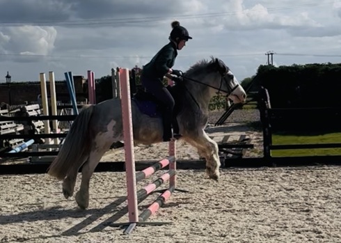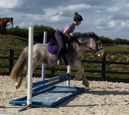 Pops a jump, haven’t done much of this with her but she has a lovely little pop and has never refused anything- prefers to give it a bit of room (see loose schooling pictures)
