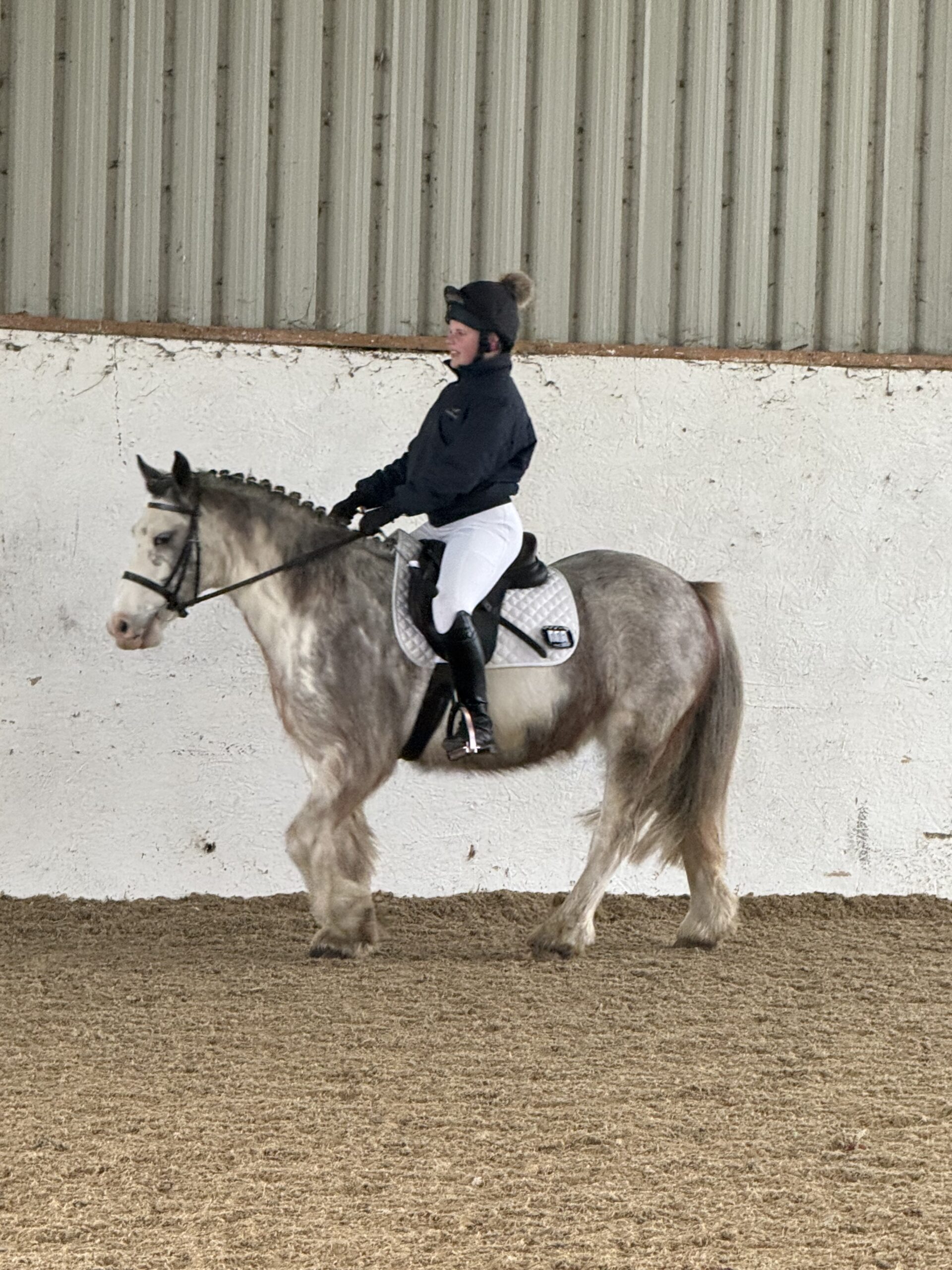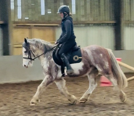 Currently ridden by a 12 year old girl, we’ve taken her out to do dressage and she enjoyed it and gave it a good go. Enjoys hacking, better with company/in a group. But doesn’t mind where she goes in the ride – prefers to go behind at a push.