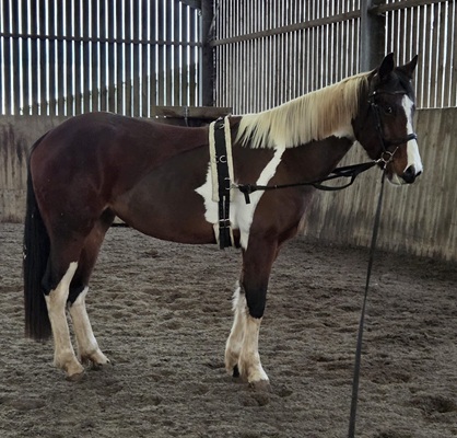 Here is my lovely 16hh still growing girl she is a Hanoverian x Normandy Cob x Thoroughbred bought from a stud yard, all history known as had her from a baby. She was professionally broken last year in July for 6 weeks and has been left to mature, she will make an excellent allrounder and also would excel in dressage as she has movements for it. She has done in-hand shows when she was younger and was well behaved and travelled lovely. She is still growing an she is 4 in May. She is up to date with all jabs etc. Sad sale but I feel she would be better suited to someone who has the time to put into her and get her out this summer. Any questions feel free to apply.