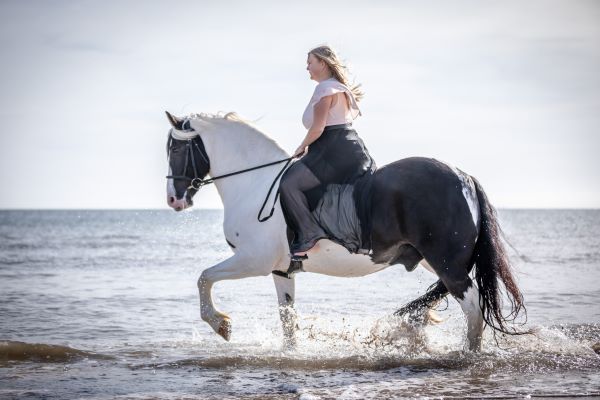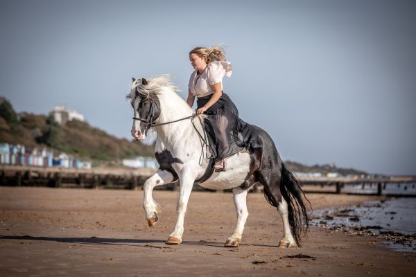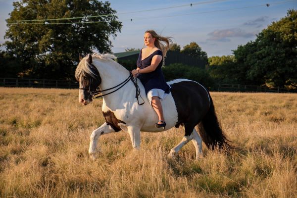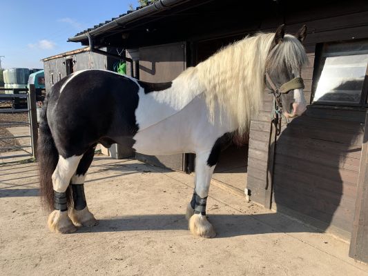 He is great out hacking, not fazed by any traffic. Great to load, travel, clip, shoe (barefoot at the moment), catch etc.