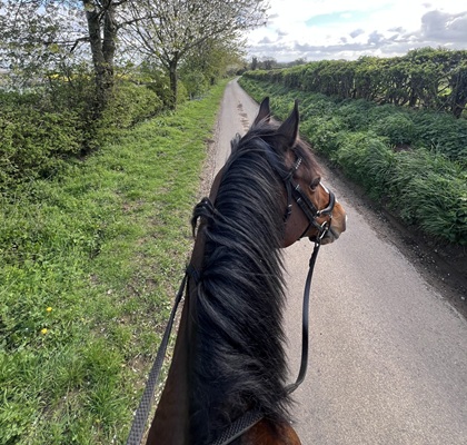 I have popped him over jumps in the school and out hacking. Not being the most confident jumping myself, he is more developed in his schooling over his jumping but again isn’t strong or fizzy and will listen to your aids.
