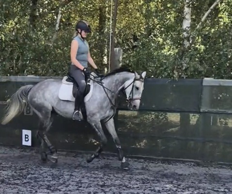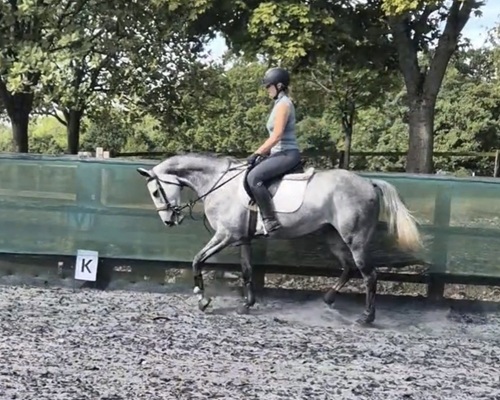 At home she loves her flat work and is now working with 3 well balanced paces. She hacks alone, and in company.